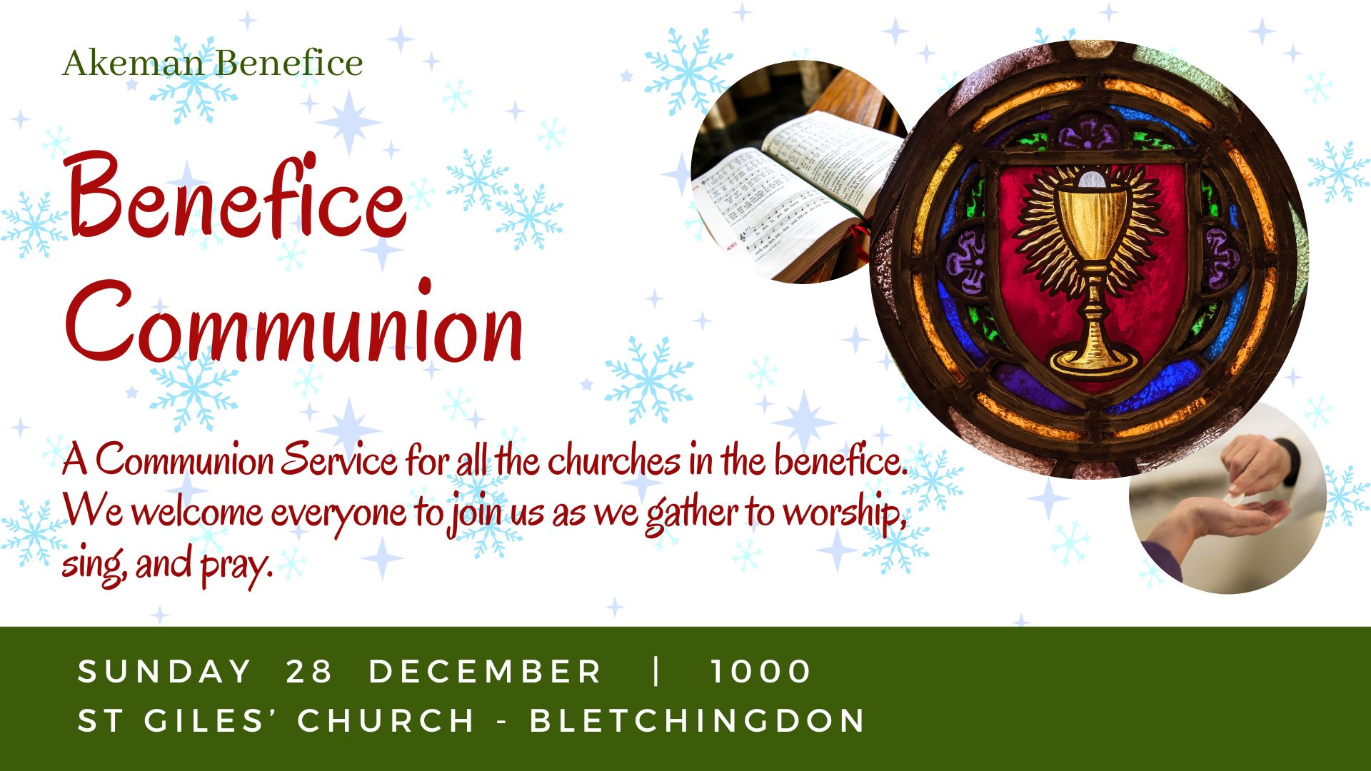 A Communion Service for all the churches in the benefice. We welcome everyone to join us as we gather to worship, sing, and pray.