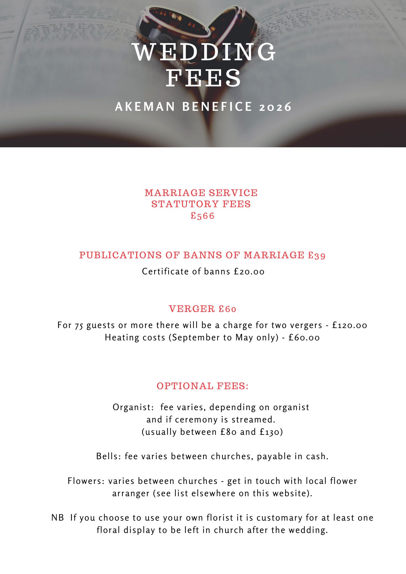 You can see information on Akeman Benefice wedding fees here – please contact us for more infomation.